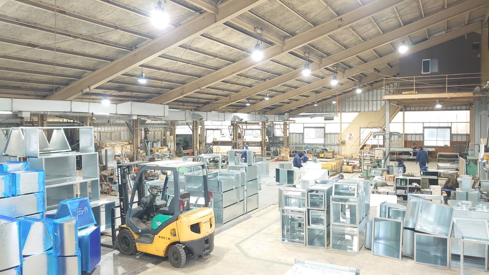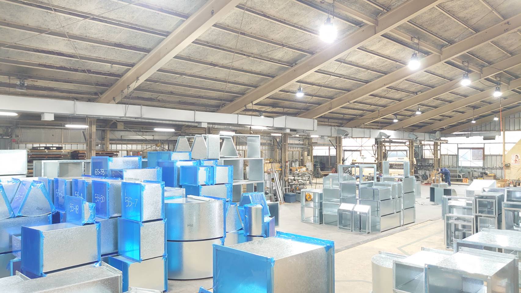 ダクトの製造は機械化が進んでいるが、まだまだ手作りの要素が多く、また同じ物を大量生産ではなく、現場毎に1本1本オーダーメイドで作り上げます。弊社は、半世紀の経験・技術力で対応し、更なる品質向上、効率化による短期納入を目指します。また、同業者よりダクトの製造依頼を受けて、ダクト及び金物、副資材消耗品等も、販売しております。